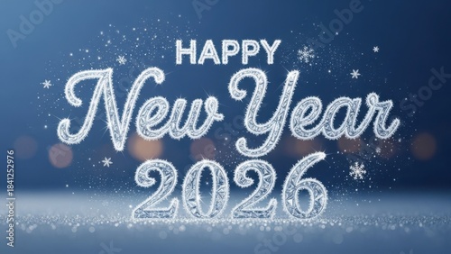 new, year, happy, glistering, snowflake, sparkling, festive, holiday, winter, celebration, party, cheerful, bright, colourful, shiny, glacé, ice, frosty, snow, flake, design, text, typography, decoration, ornament, greeting, card, blue