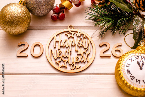 2026, happy new year, congratulation, background, celebration, white, december, decorative, christmas, decoration, happy, bright, wooden, holiday, wood, christmas, new, year, pine, tree branch, tree, winter, ball, new year, greeting, banner, merry christmas, card, gold