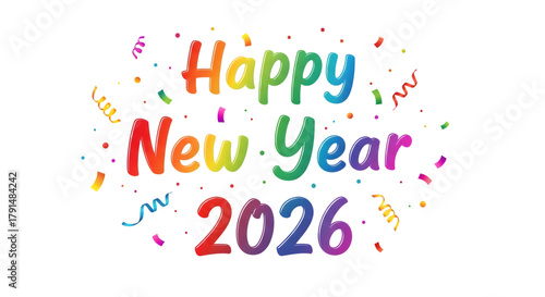 Happy new year 2026 with colorful confetti