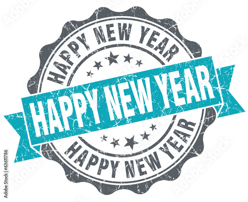 Happy new year turquoise grunge retro vintage isolated seal