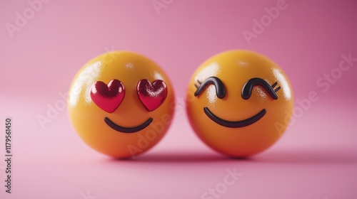 Happy Pair of Face Emojis with Hearts for Eyes and Smiling Expressions