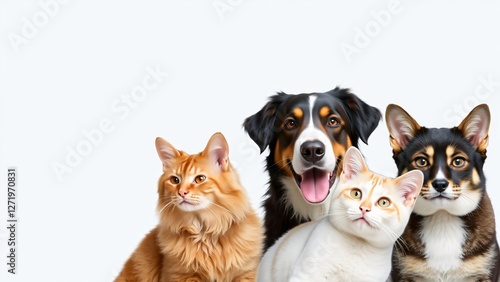 Happy Pets Adorable Dog and Cat Companions on White Background