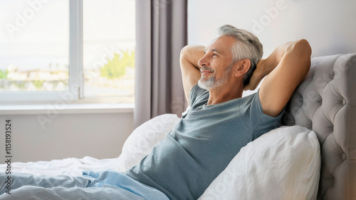 man, senior, sitting, bed, home, old, person, elderly, smiling, indoor, sofa, hair, people, smile, mature, looking, grandfather, photogenic, retirement, retired, patient