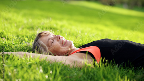 senior, smiling, woman, mature, active, fitness, park, relaxing, leisure, retirement, grass, healthy, wellness, nature, enjoying, lifestyle, joy, happiness, sunshine, hair, ageing, elderly, casual attire, peace, recreation, tranquil, well-being, serene, green, old, carefree, natural, life, comfortable, sporty, day, summer, lying, fresh, blond, air, closed, eye, rest, peacefulness