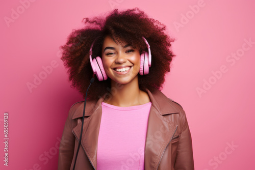 music, earphones, smiling, female, woman, afro, listening, happiness, pink, carefree, earphones, cheerful, beauty, studio shot, person, lifestyle, background, attractive, portrait, joy, african, one person, curly, young adult, black, young, adult, studio, technology, ethnicity, laughing, toothy smile, positive, fun, coiffure, stylish, dance, expression, confidence, american, optimistic, melody, model, face, black woman, african american, excited, head shot