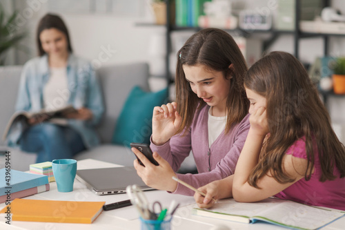 girl, children, children, student, smartphone, studying, mobile phone, app, online, people, education, learning, woman, mother, eltern, reading, book, textbook, addiction, focused, homework, living room, girl, desk, desktop, home, cyberspace, connecting, distracted, lifestyle, family, friends, friendship, hobby, sitting, together, sister, person, indoor, sibling, childhood, young, schoolgirl, residential, technology