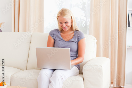 one person, adult, woman, gorgeous, blond, computer, couch, laptop, lifestyle, living room, notebook, missy, caucasian appearance, blond, attractive, beautiful, beauty, casual attire, cheerful, clothing, cute, enjoy, enjoying, enjoyment, fresh, happiness, happy, home, house, human, indoor, interior, cyberspace, laughing, leisure, looking, modern, natural, network, pretty, sexy, sitting, smile, sofa, technology, web, wireless, work