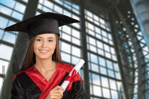 graduate, university, degree, 20s, attractive, bachelor, bachelor, background, beautiful, black, building, cap, celebration, ceremony, certificate, cheerful, college, commencement, congratulation, cute, day, diploma, education, female, girl, gown, graduation, hand, happiness, happy, hat