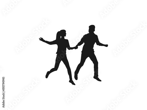 Happy young couple holding hands running silhouette. Couple walking holding hands silhouette. happy couple silhouettes. Vector Illustration. Boys and girls. black color isolated on white background.