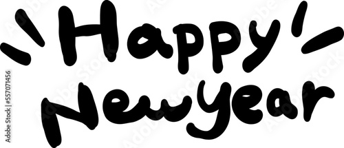 手描き風 HappyNewYear の文字  黒単色