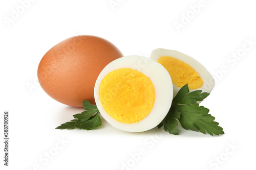yolk, half, boiled, cut, breakfast, eat, shelled, healthy, chicken, shell, parsley, food, group, egg, albumen, cooked, fresh, diet, hard, snack, isolated, sliced, unshelled, white
