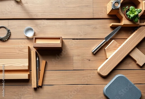Harmonious flat lay of wood, metal, and glass construction materials, rustic, texture