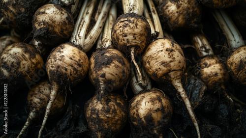 Harvested root vegetables showcase rich earthy tones and textures in autumn