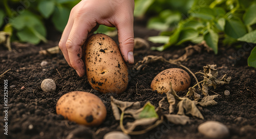 Harvesting Fresh Potatoes: A Hand Unearths Homegrown Spuds