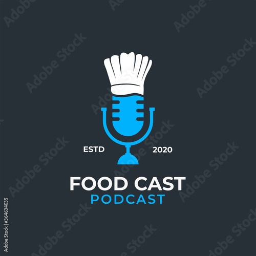 Hat cooking and mic for podcast logo icon for food cooking restaurant blog video vlog review channel