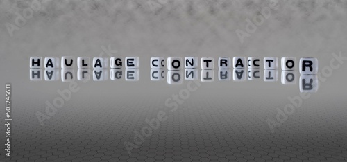 haulage contractor word or concept represented by black and white letter cubes on a grey horizon background stretching to infinity