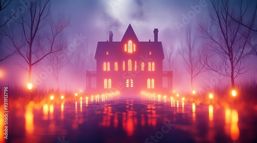 haunt, manor, flicker, light, three-dimensional, illustration, skittish, ghostly, eerie, luxury home, concept, surreal, horror, graphic, artwork, design, gothic, render, effect, beauty, vignette, texture, creepy, detail, model, game, video, halloween