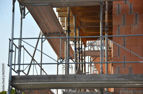 architecture, brick, power shovel, construction, build, scaffolding, crane, construction equipment, construction material, under construction, concrete, girder, funding, money, scaffold, house-building, rooftop, forest, real estate, invest, isolation, isolate, credit, ladder, massif, wall, mortar, new construction, red, duct, connection, boarding, value, industry, cement, construction worker, working man, profession, carpenter, roofer, house