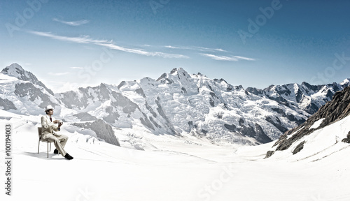 businessman, chair, cup, white, sitting, hot drink, male, photogenic, hat, cylinder, suit, break, rock, mountain, top, achieve, achievement, natural, landscape, cliff, refreshment, idea, fresh, relax, relaxed, corporate, business, adult, caucasian, professional, man, executive, human, life, breakfast