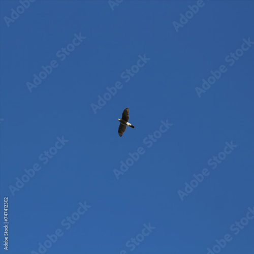 Hawk in flight with a blue sky