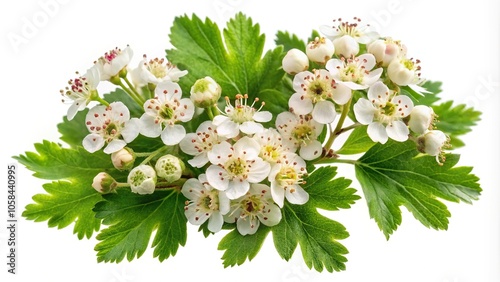Hawthorn Crataegu Monogyna flower and foliage isolated on white background