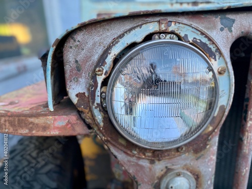 headlamp, truck, rusted, vintage, car, old, antique, rust-eaten, vehicle, metal, auto, wheel, rust, automobile, transportation, light, retro, detail, transport, engine, abandoned, steel, colourful, artistic