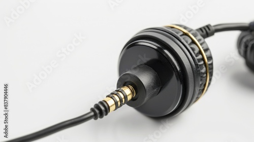 Headphone connector, audio cable on white background