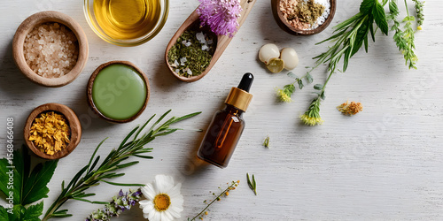 Health and beauty concept depicted with natural remedies.