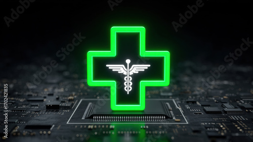 health, cross, digital, board, technology, medicals, symbol, green, light, innovation, health care, electronic, circuit, chips, futuristic, glowing, medicine, pharmacy, caduceus, modern, science, datum, network, connection, computer, microchip, background, abstract, cyber, tech, hardware, communication, system, interface, care