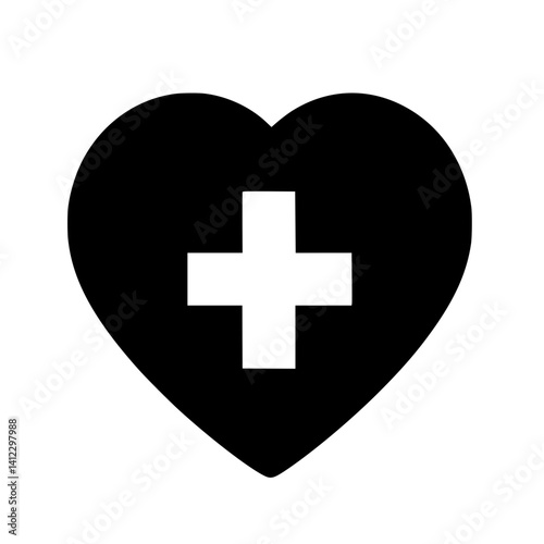 Health Symbol in Black Heart Shape with Cross Design
