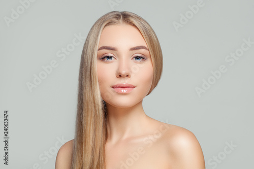Healthy blonde woman portrait. Beauty girl with long healthy blond hair and perfect clear skin. Natural beauty