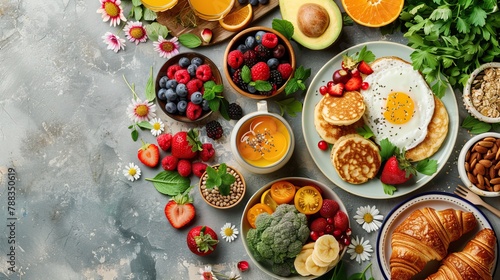 Healthy Breakfast Spread with Fresh Berries and Eggs