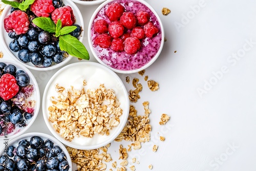 breakfast, yogurt, granola, berry, healthy, nourishment, variety, blueberry, raspberry, diet, organic, food, bowl, tasty, receipe, balanced, meal, fruit, freshness, morning, delicious, concept, fiber, vitamin, filling, energy, start, lifestyle, eating habits, vitamin c, antioxidant, flavorful, colourful, assorted, health care, topview, snack, minimal, modern