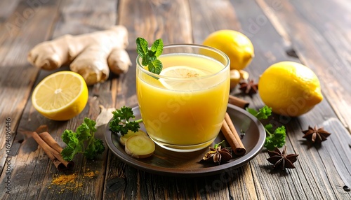 drink, healthy, ginger, lemon, garlic, herb, cinnamon, spice, orange, yellow, wooden, table, glasses, food, ingredient, alimentary, organic, vitamin, natural, fresh, summer, autumn, fall, tasty, closeup, beverage, delicious, rustic, spiced
