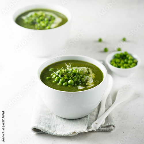 Healthy green pea soup with cream