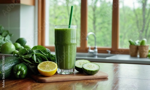 smoothie, healthy, health, healthy lifestyle, wellness, vitality, health-giving, alimentary, drink, beverage, vegetable, fruit, detox, diet, nourishment, organic, fresh, natural, raw, vegan, vegetarian, food, cucumber, avocado, spinach, greener, tomatoes, kitchen, counter, wood, board, glasses, lifestyle, weight loss, blend, blended, juice, receipe, ingredient, preparation, morning, breakfast, snack, antioxidant, vitamin, mineral