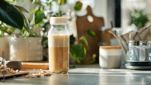Healthy lime and oats smoothie in a bottle with fresh ingredients