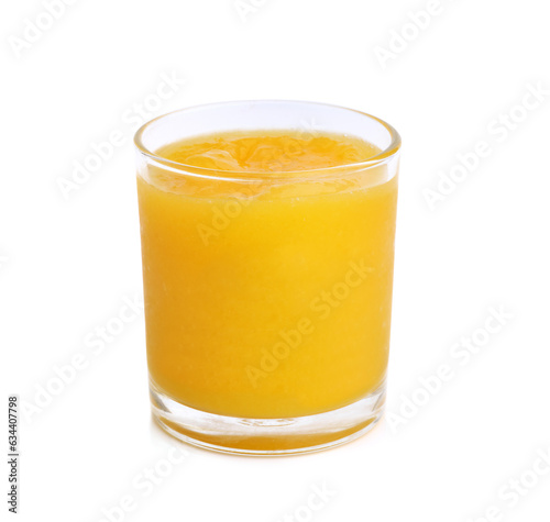 Healthy mango smoothie in a glass on white background