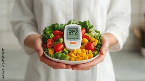 individual, monitoring, diabetes, advice, weight, management, wellness, living, balance, choice, option, preparation, service, ingredient, insulin, meter, healthful, person, vegetable, glucose, health, nourishment, fruit, calorie, wholesome, kitchen, cook, habit, care, holding, dietitian, plate, healthy, lifestyle, portion, meal, colours, eating, food, fresh, diet, fresh produce