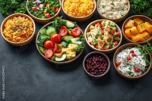 healthy, take-away, meal, salad, rice, wrap, container, food, drink, lunch, take out, environmentally friendly, paper, delivery, topview, soup, bowl, buddha, fresh, meat, vegetarian, organic, dinner, vegetable, fruit, eating, order, cardboard, delicious, service, packed, chicken, craft, empty, poke, juice, hot drink, table, grey background, minimalist, texture