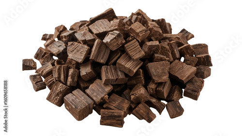 Heap of aromatic agarwood chips, fragrant bakhoor incense for religious ceremonies and meditation,