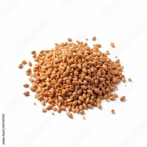 Heap of Brown Grains Wheat Seeds Harvest Agriculture Staple Food Supply Cereal Crop Isolated on White