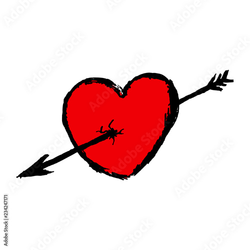Heart pierced with an arrow. Close-up. Vector image on white background. Isolate.