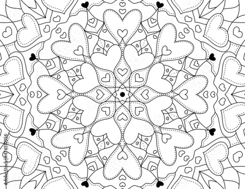 Heart shaped mandala coloring page. Colouring book for adults for self love and stress relief. Romantic motives to color