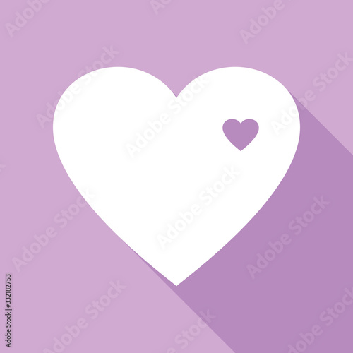 Heart sign. White Icon with long shadow at purple background. Illustration.
