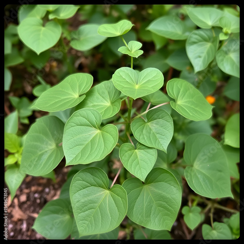 Heart-leaved moonseed herbal plant in a garden.(Tinospora cordifolia)Common names Gaduchi and Giloya.