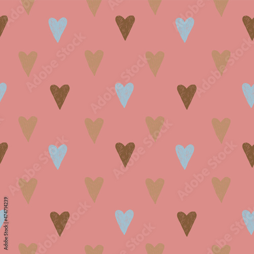 Hearts seamless pattern drawn in a graphics editor on a Pale Violet Red background. For fabric, sketchbook, wallpaper, wrapping paper.