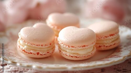 Heart-shaped macarons dessert bakery food photography cozy setting