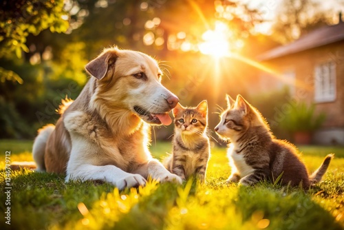 heartwarming friendship: dog and cat playing together in backyard