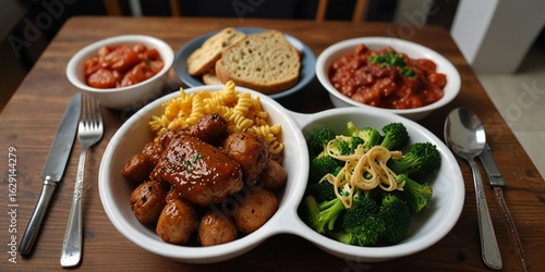 meatball, dinner, meal, food, broccoli, bread, side, dish, cooked, main, course, cookery, delicious, eating, epicure, gastronomy, home, cooking, homemade, kitchen, lunch, meat, plate, eatery, savoury, serving, table, traditional, vegetable